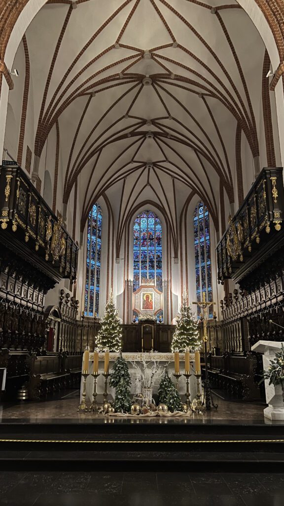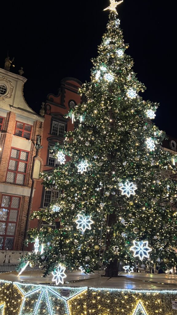 E, claro, os mercados natalinos são um espetáculo à parte. As praças se transformam, as casinhas de madeira decoradas criam um clima encantador. Há comidas típicas, vinho quente para espantar o frio, artesanato, joias, porcelanas, decorações e presentes cheios de identidade. O mercado de Gdansk, um dos mais famosos da Europa, acontece no coração da cidade velha, com vista para seus principais edifícios históricos. E, entre tantas surpresas, encontramos até coxinha – sim, coxinha! Um sorriso brasileiro no meio do inverno europeu.