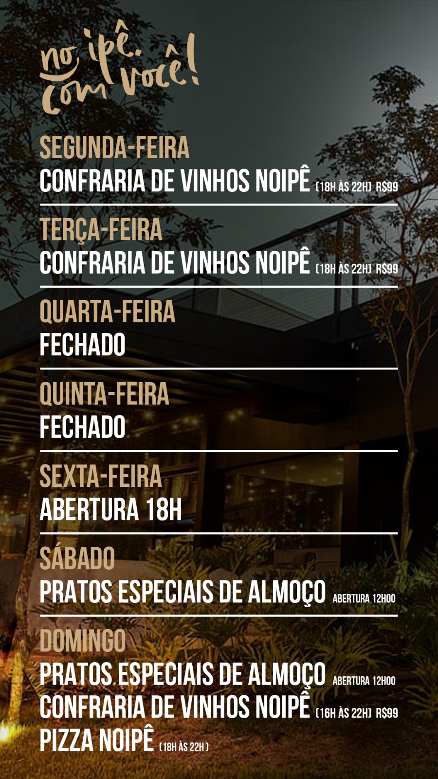 Além de excederem expectativas quando o assunto é gastronomia, os restaurantes Noipê, ROS, Salz e Zucker (que compõem o Grupo ZK) possuem uma programação de entretenimento especial, a fim de compor uma experiência completa a quem os visita. São desde atrações musicais até menus especiais, festivais e confrarias.