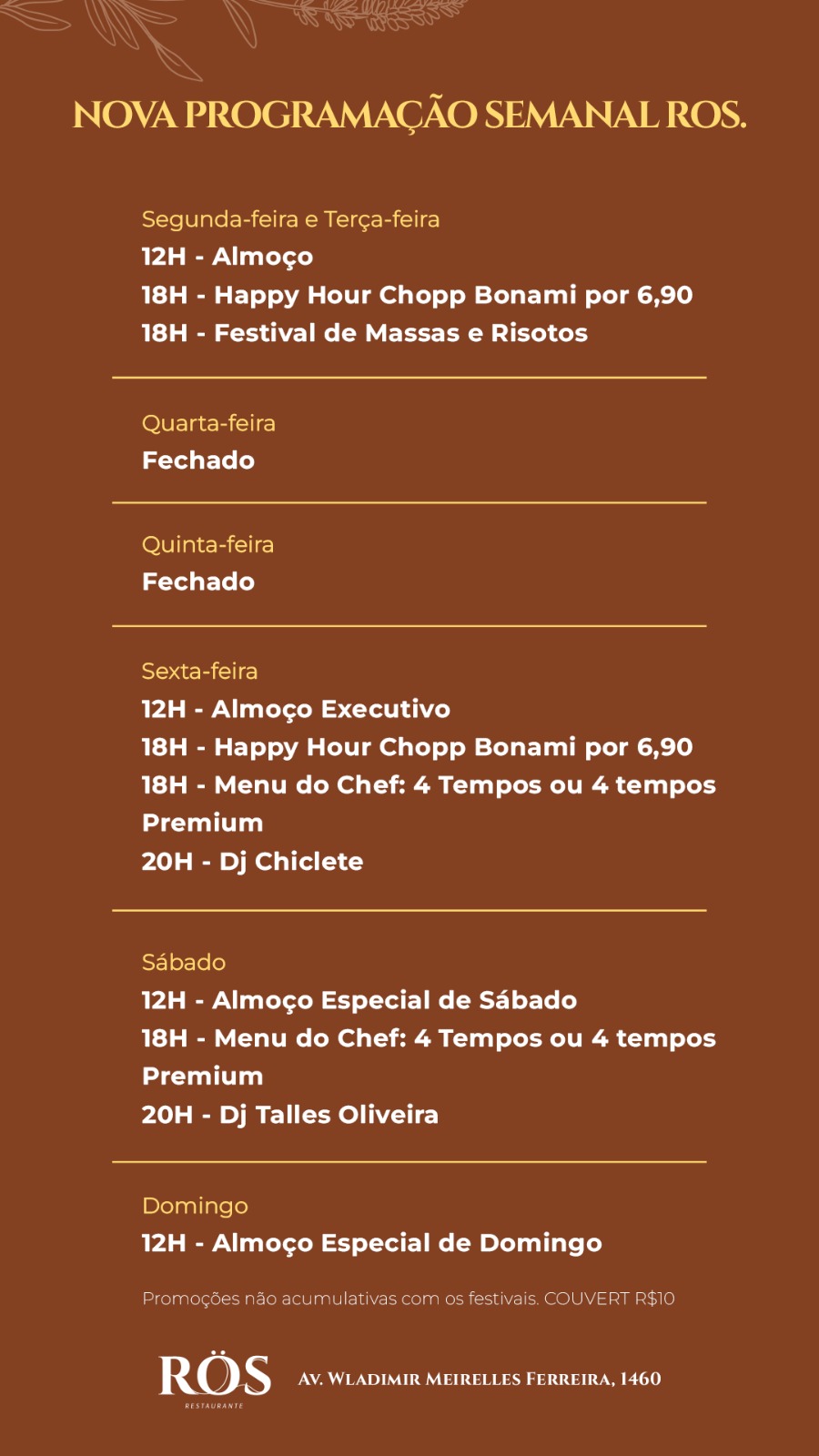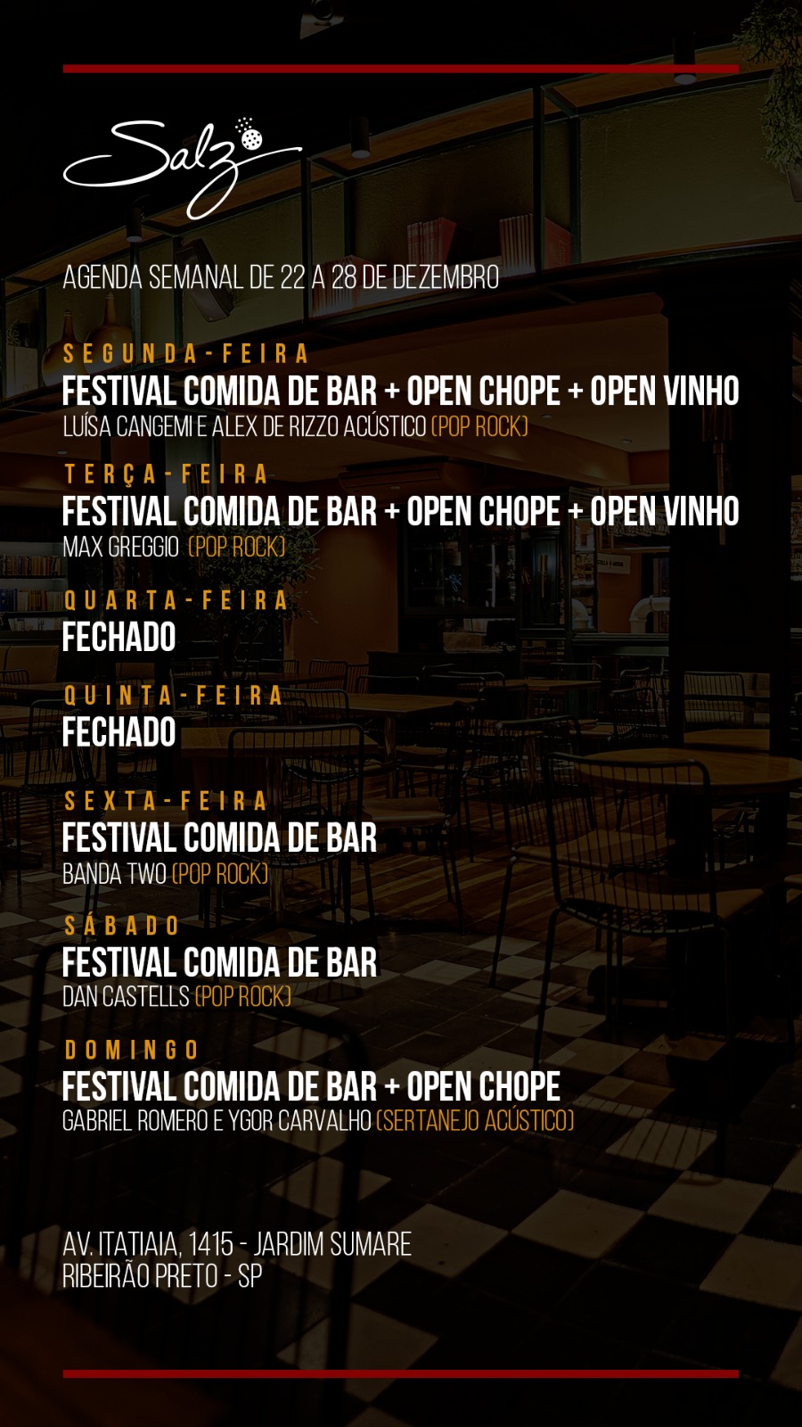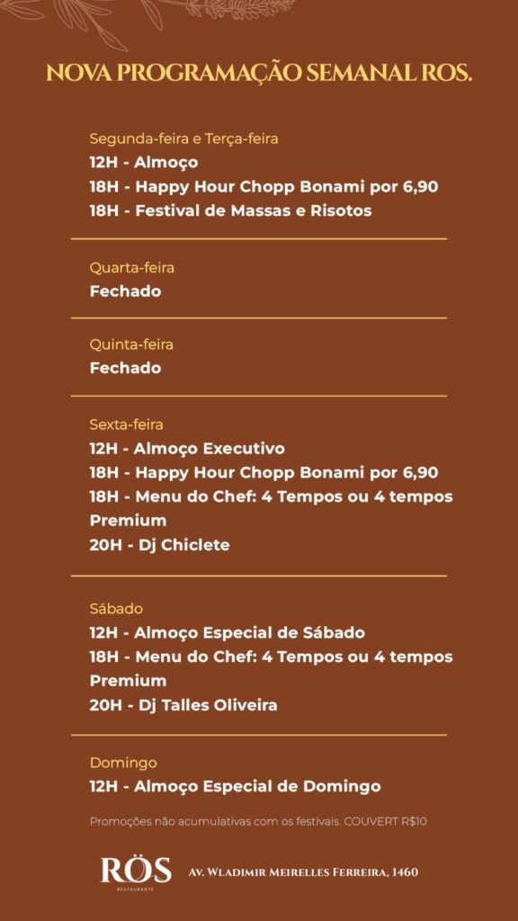 Agenda ZK: programação semanal dos restaurantes