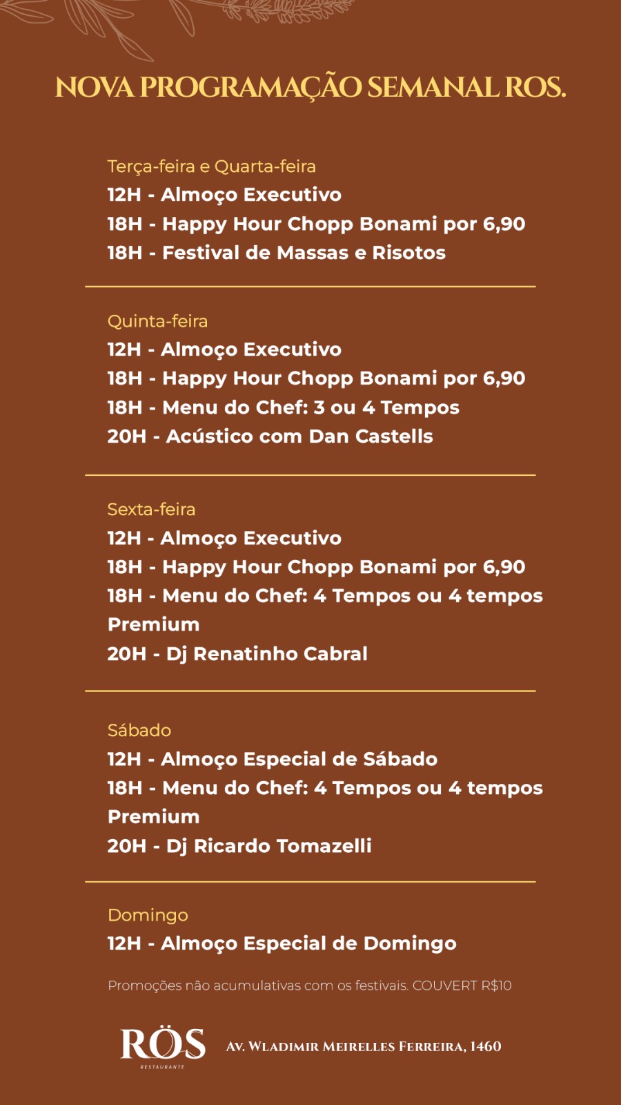 Agenda ZK: programação semanal dos restaurantes