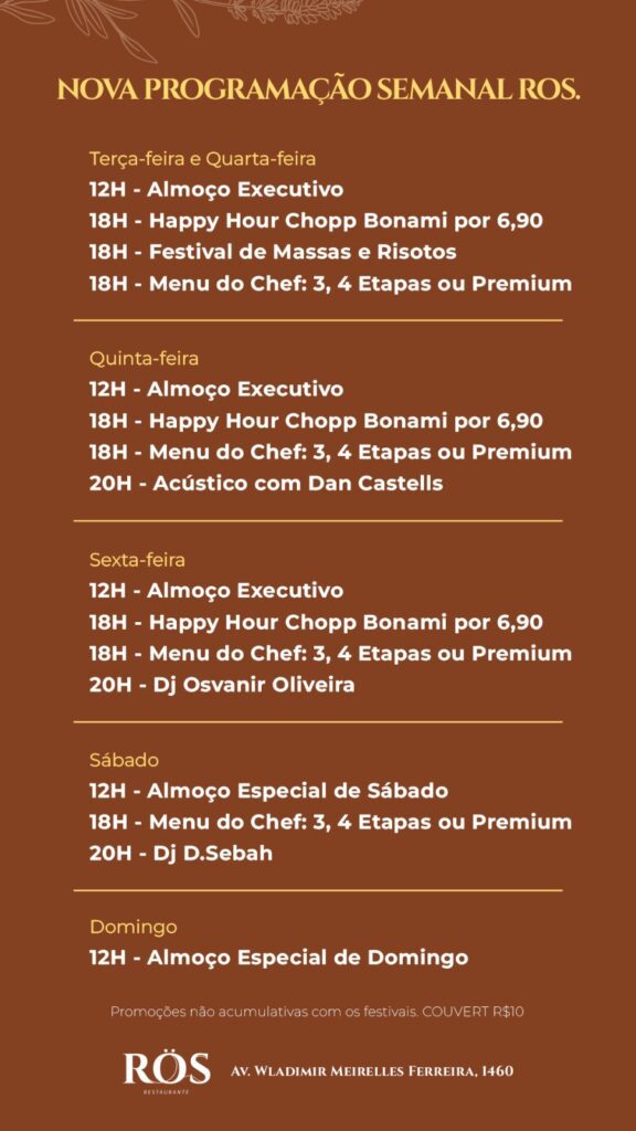 Agenda ZK: programação semanal dos restaurantes