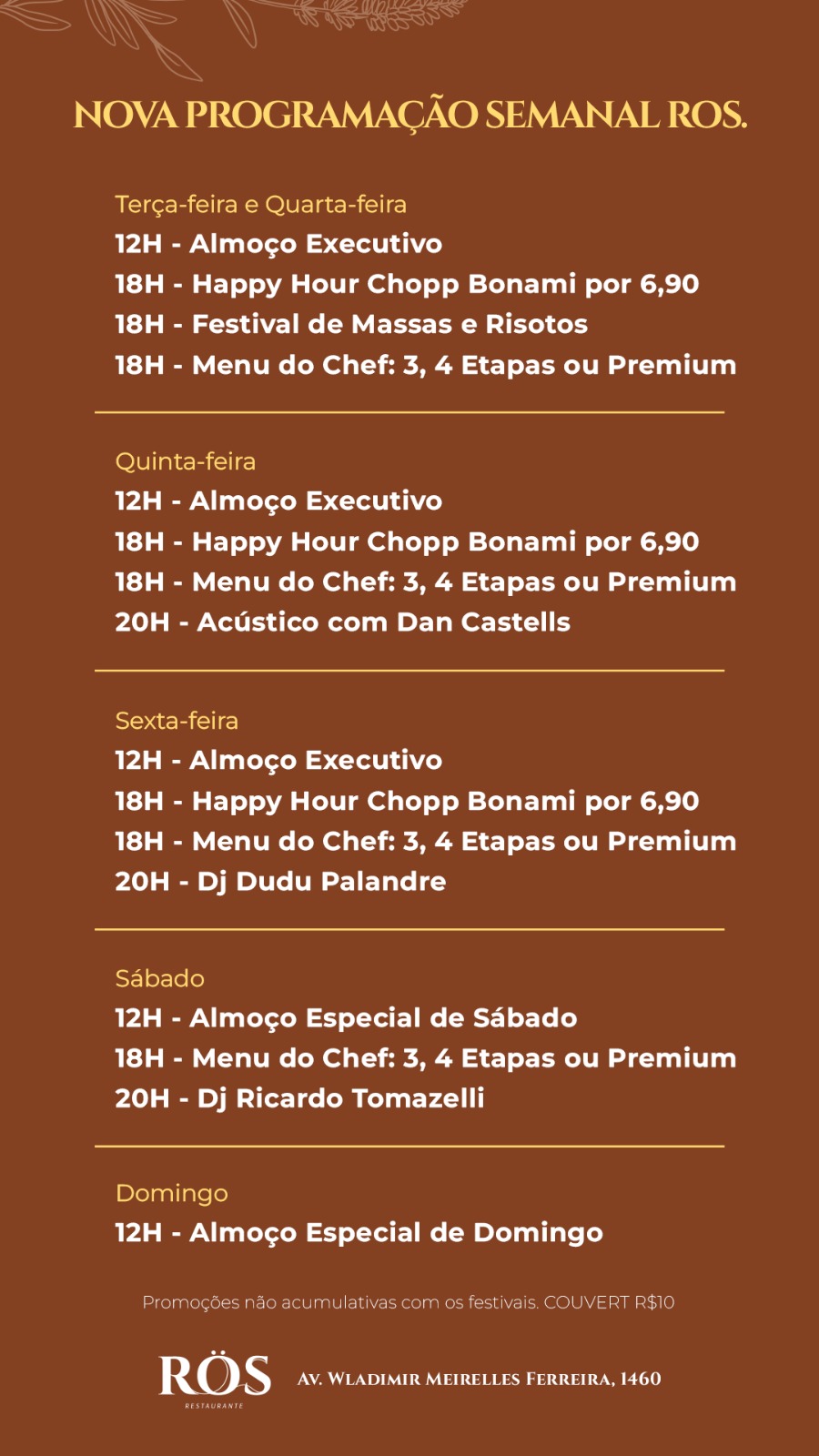 Agenda ZK: programação semanal dos restaurantes