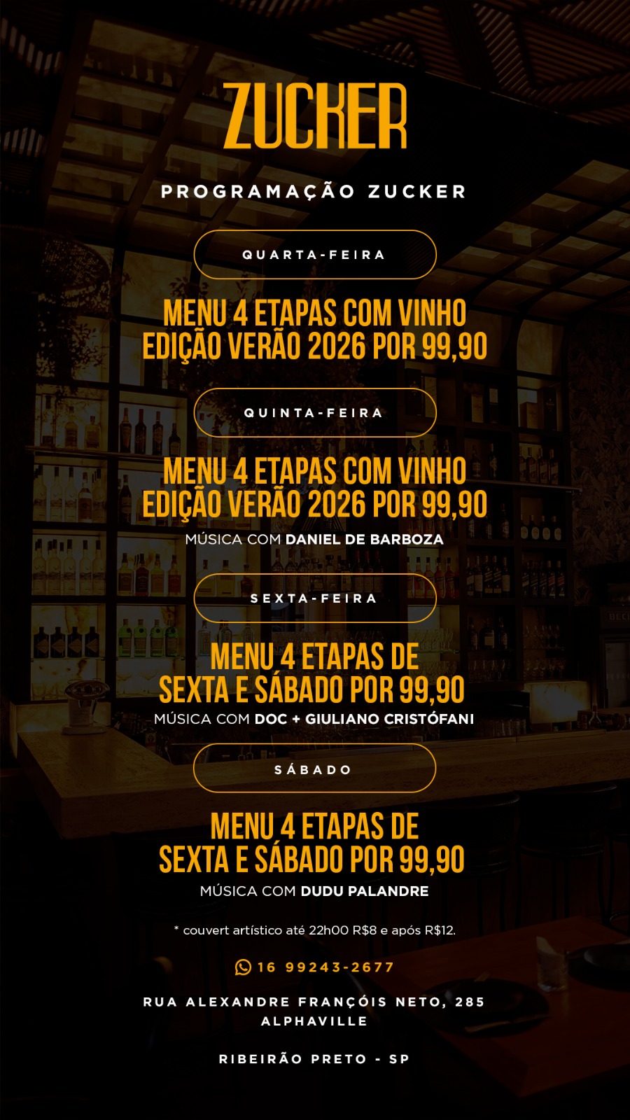 De segunda a domingo, as quatro casas do Grupo ZK garantem a Ribeirão Preto o melhor da gastronomia, do entretenimento e da vida social