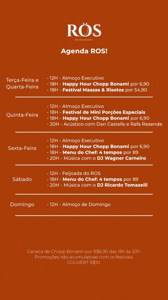 Agenda ZK: programação semanal dos restaurantes