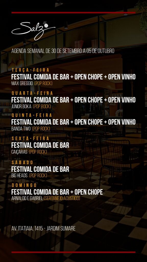 As agendas são tão variadas (e completas) que semanalmente divulgaremos todas aqui no Portal Zumm para que você possa se organizar. A seguir, confira a programação entre 30 de setembro e 05 de outubro: