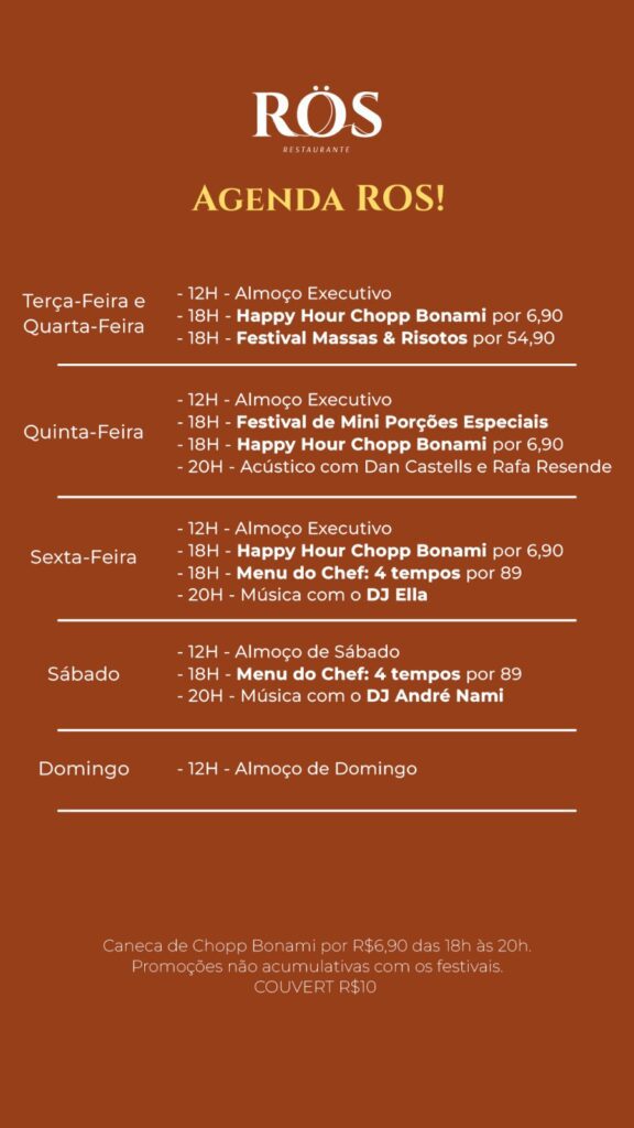 Agenda ZK: programação semanal dos restaurantes