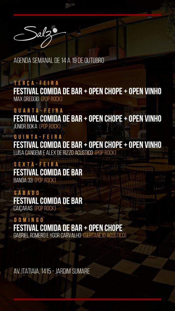 As agendas são tão variadas (e completas) que semanalmente divulgaremos todas aqui no Portal Zumm para que você possa se organizar. A seguir, confira a programação entre 14 e 19 de outubro: