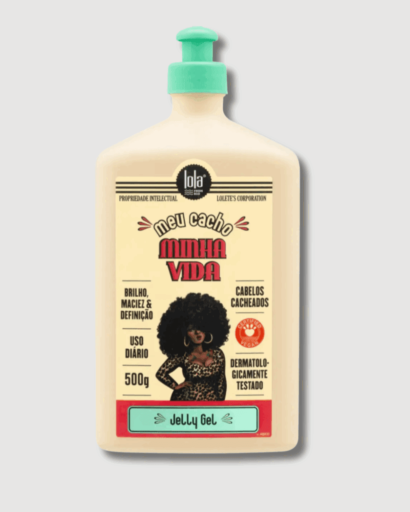 Gelatina Meu Cacho Minha Vida da Lola Cosmetics: “Pra quem ama uma finalização mais potente e com maior fixação, sem deixar o cabelo duro”.