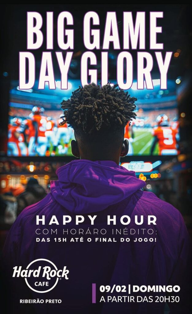 Neste domingo, 9 de fevereiro, o Hard Rock Cafe® Ribeirão Preto funcionará em horário especial para garantir a transmissão ao vivo da maior competição de futebol americano, o Super Bowl. O restaurante temático estará aberto para um happy hour a partir das 15h, permanecendo aberto até o final da partida. E tem mais: para o evento especial, a casa também preparou promoções especiais.
