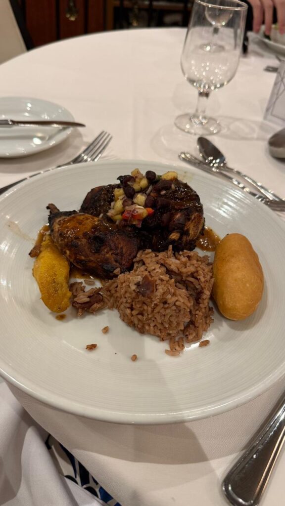 O primeiro destino do cruzeiro foi Labadee, península localizada no norte do Haiti e de uso exclusivo da Royal Caribbean. Segundo a modelo, o que mais a surpreendeu nessa parada foi o Jerk Chicken, um prato típico da região composto por um frango apimentado servido com arroz, feijão e vegetais. Apesar de elementos clássicos, os sabores eram surreais!