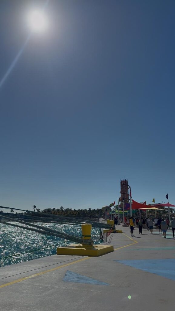 Com mais de sete praias deslumbrantes, Coco Cay proporcionou momentos de descanso, cenários perfeitos para fotos e uma atmosfera de puro relaxamento.