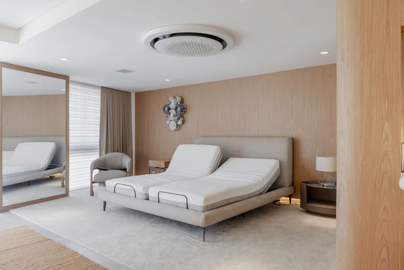 No quarto, essa tendência se traduz em móveis de luxo que unem conforto, inovação e sofisticação. A Bell’Arte, marca da Robusti Quartos especializada em alta decoração, apresenta soluções dentre as quais um dos destaques é a base articulada recém-lançada, que combina movimentos suaves, ajustes personalizados e sistema de massagem, integrando tecnologia, ergonomia e bem-estar ao ambiente.