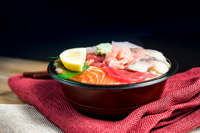 Literalmente “espalhado”, é uma tigela de arroz (shari) coberta com uma variedade de fatias de peixe cru, frutos do mar e vegetais, dispostos de forma artística. Ele lembra o famoso “poke”, que é um prato tipicamente havaiano, afinal, ambos têm como ingrediente principal o peixe fresco cru. A principal diferença são os ingredientes, os temperos, e o corte dos peixes: no poke, o peixe é cortado em cubinhos, e no Chirashi, é servido em sashimis (fatias).