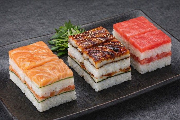 É o sushi prensado. O peixe e o arroz são colocados em uma forma de madeira (oshibako) e pressionados, resultando em um bloco compacto e retangular que é então cortado em porções.