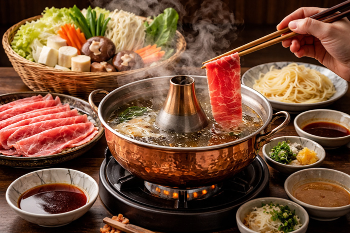 Shabu-shabu é um prato com carne bovina e verduras cortadas em fatias bem finas, levemente cozidas em mergulhos na água quente. Como as fatias são extremamente finas, elas cozinham em segundos. O prato geralmente é servido acompanhado de ponzu, molho à base de frutas cítricas, e gergelim.