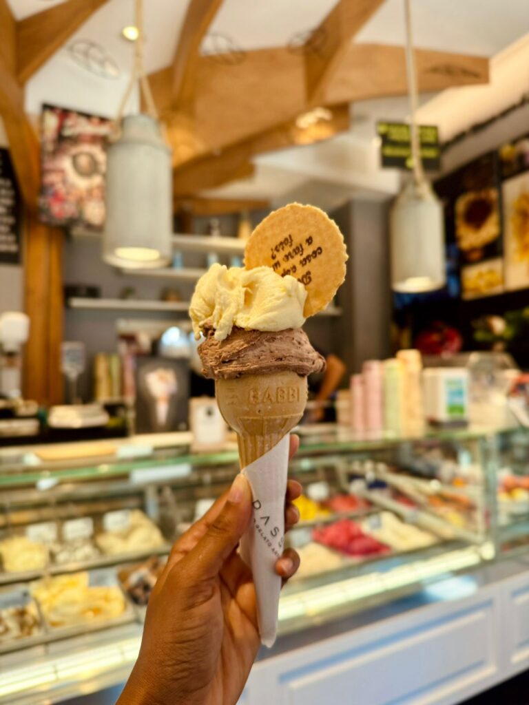 “Acho que nem precisaria falar sobre a gastronomia italiana, mas, aqui vou eu!”. Nessa brincadeira, a modelo lembra que a Itália é o lugar das melhores panificadoras, gelaterias e cafeterias do mundo, mas aponta que, em uma viagem em Milão, algumas paradas são obrigatórias: