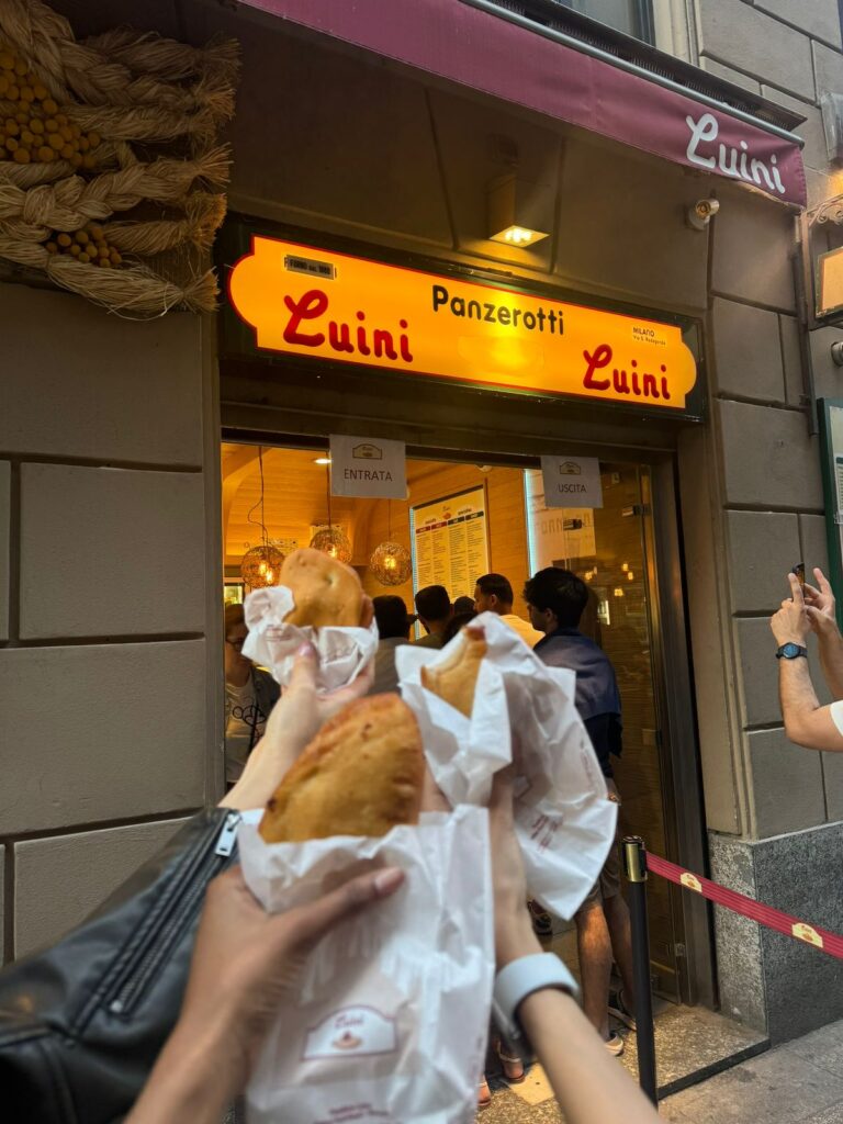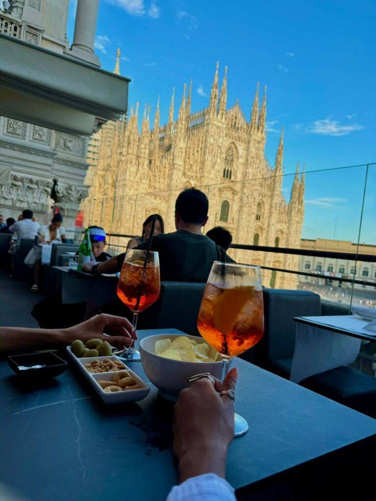 “Depois da Duomo, um café na tradicional cafeteria Marchesi, que fica dentro da galeria Vittorio Emanuele, seguido de um panzerotto, ali do Luini, e, com certeza, um stop no Terrazza Aperol para provar dos melhores drinks de Milão”.