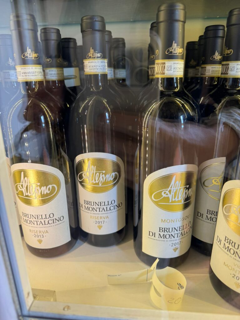 Passeando na vinícola interna do hotel e em outras da região, Allana, que é uma verdadeira fã da bebida, descobriu alguns de seus preferidos: “Os mais famosos são os vinhos Brunello di Montalcino, mas eu preciso colocar na lista o Altesino”.