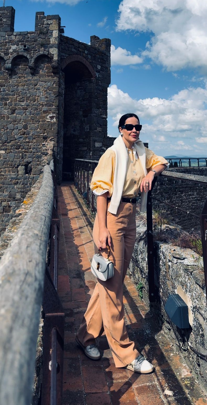 Um dos tópicos mais regulares nas redes sociais de Allana é a moda, então, é claro, que ela não poderia deixar de dar dicas do que vestir na Toscana. A influenciadora buscou looks que fossem “classudos” (como ela mesma os define) e, ao mesmo tempo, confortáveis. “Por mais que eu usasse uma calça social, sempre colocava um tênis, porque o conforto vem em 1º lugar”.